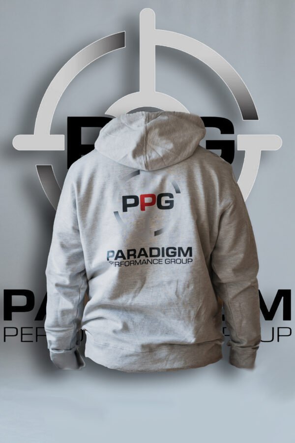 Hoodie with Paradigm Performance Group on left chest and large PPG logo on the back